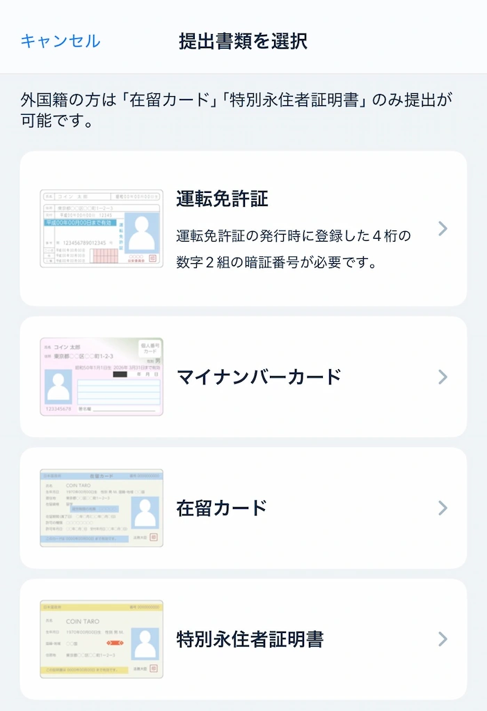 ここで入力する内容は、後で提出する本人確認書類と一致している必要があります。