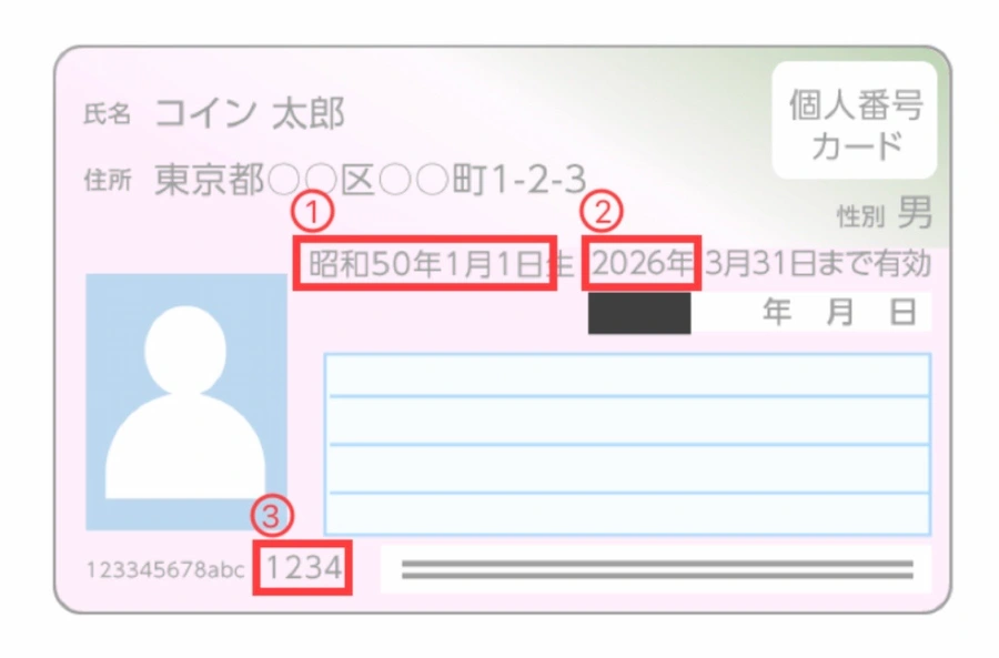 マイナンバーカードを選択した場合、まずはマイナンバーカードに記載されている次の3つの情報を入力します。