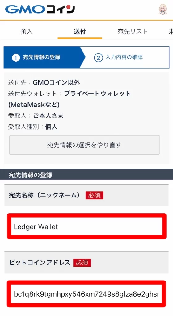 これ以降は、登録したウォレットアドレスを送金先に選択することで、ビットコインを安心して送金することができます。