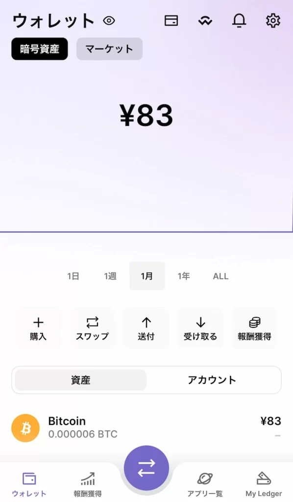 しばらくしてからLedgerやMetamaskなどのウォレットアプリを確認すると、送金したBitcoinが届いています。