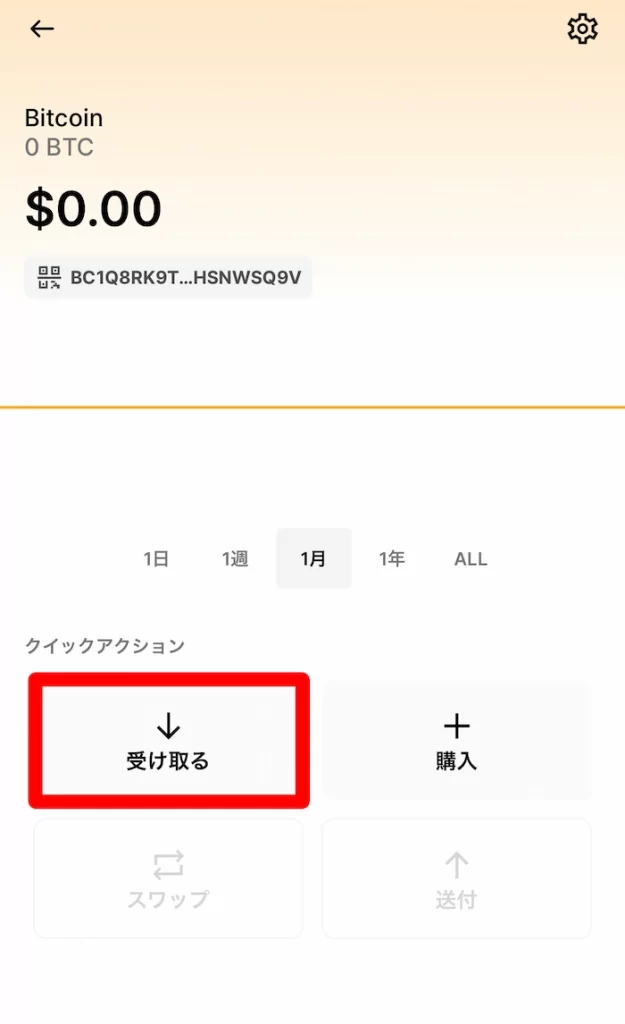 まずは、送金先となる「ビットコインの受取アドレス」 を確認していきます。