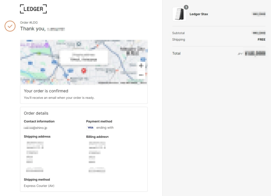 Ledgerはフランスの企業ですが、最終的には佐川急便が家に届けますので、日本語でも全然問題ありません。