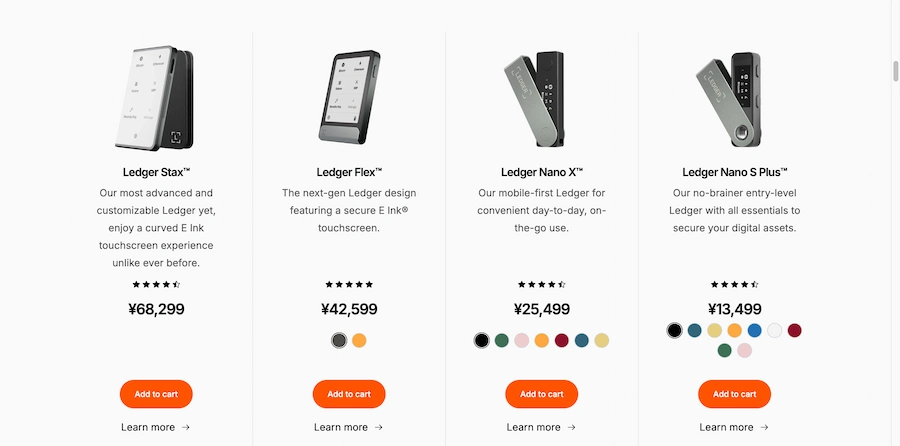 このURLから公式サイトにアクセスし、Ledger製品を購入するようにしましょう。
